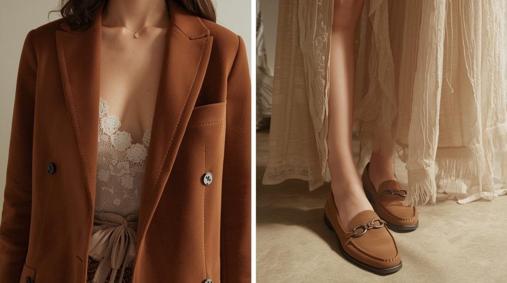 Soft, earthy textures are back. Suede is having a major moment—in jackets, skirts, matching sets. The bohemian aesthetic (lace, flowy silhouettes, fringe, relaxed fits) is combining with rugged suede for a luxe but laid-back vibe.